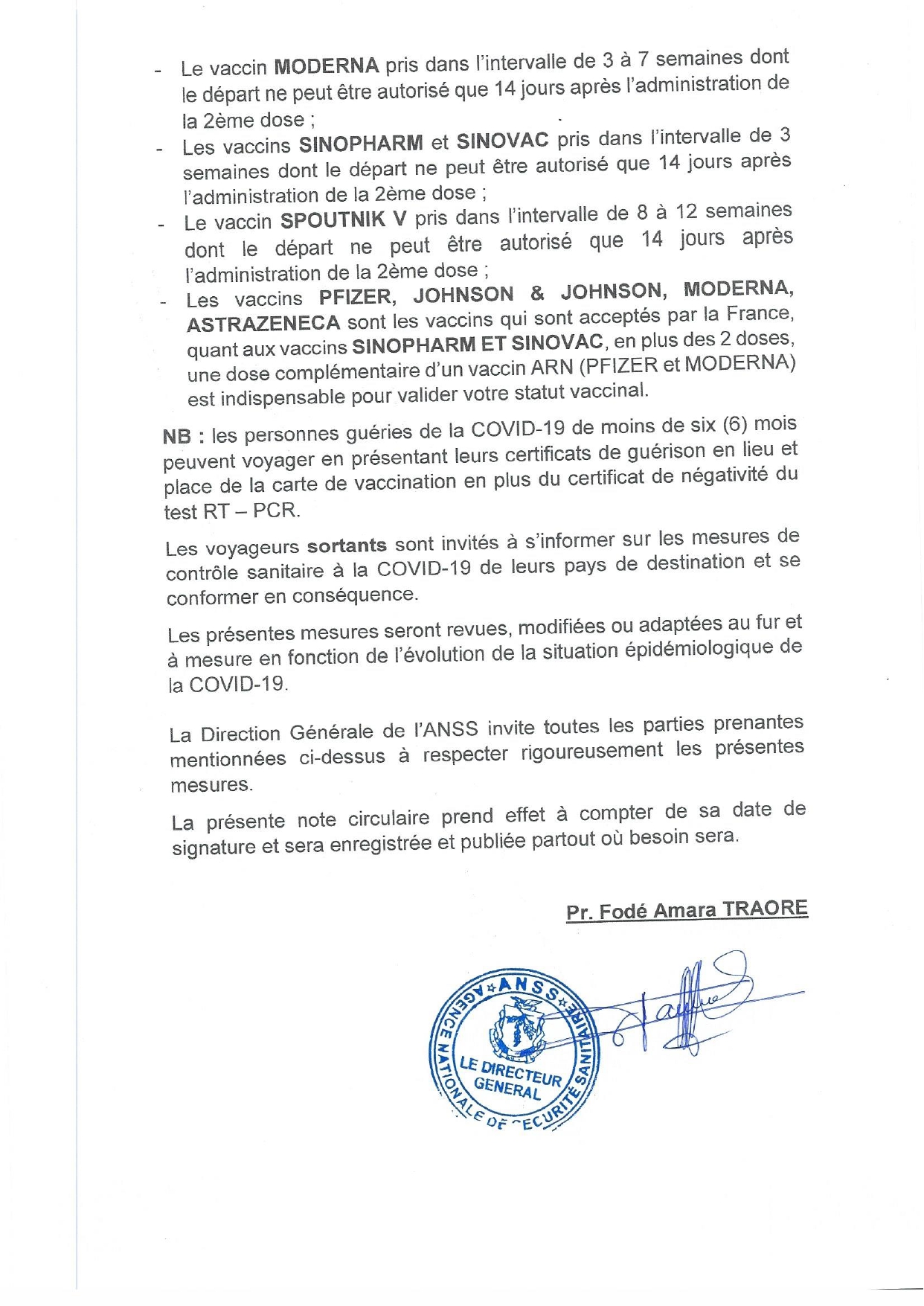 L’Agence nationale de sécurité sanitaire (ANSS) a dans une note circulaire annoncé de nouvelles mesures à l’attention des voyageurs à l’international, des agences de viyage, des autorités aéroportuaires et des agents en charge du contrôle sanitaire de l’Aéroport international Ahmed Sékou Touré
