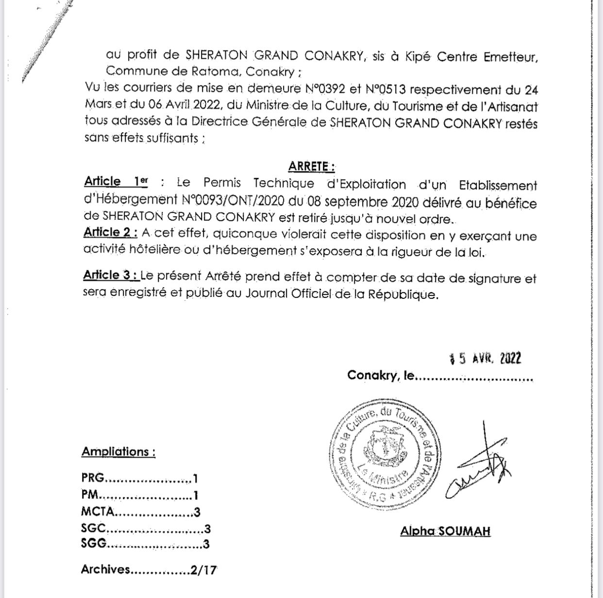 L’article Urgent. Conakry. Le CNRD retire le contrat d’exploitation de Sheraton Grand (arrêté) est apparu en premier sur Guinee7.com.