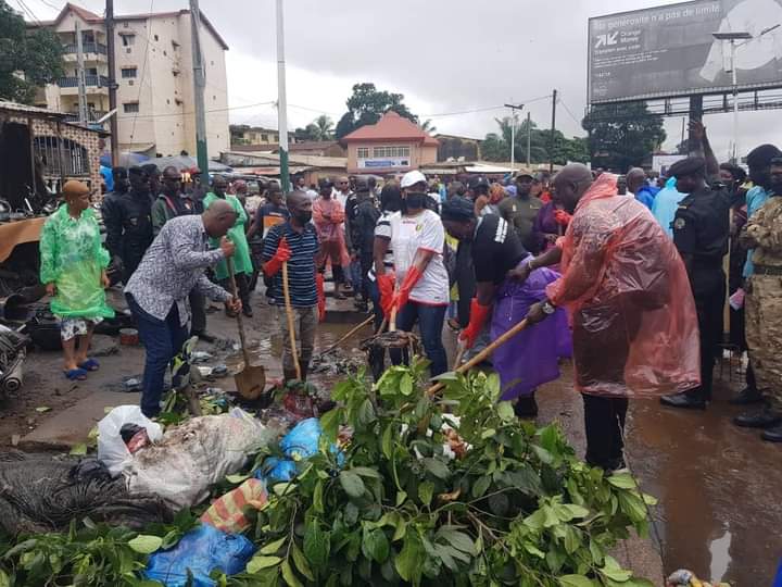 La ministre de l’information et de la Communication Rose Pola Pricemou était sur le terrain ce jeudi pour débarrasser Conakry de ses ordures.