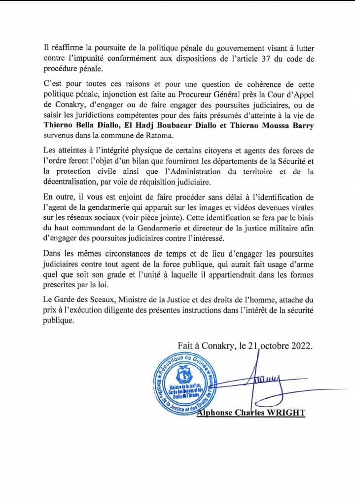 L’article Manifs du FNDC. Le ministre de la Justice reconnait les pertes en vies humaines et ordonne les poursuites… est apparu en premier sur Guinee7.com.