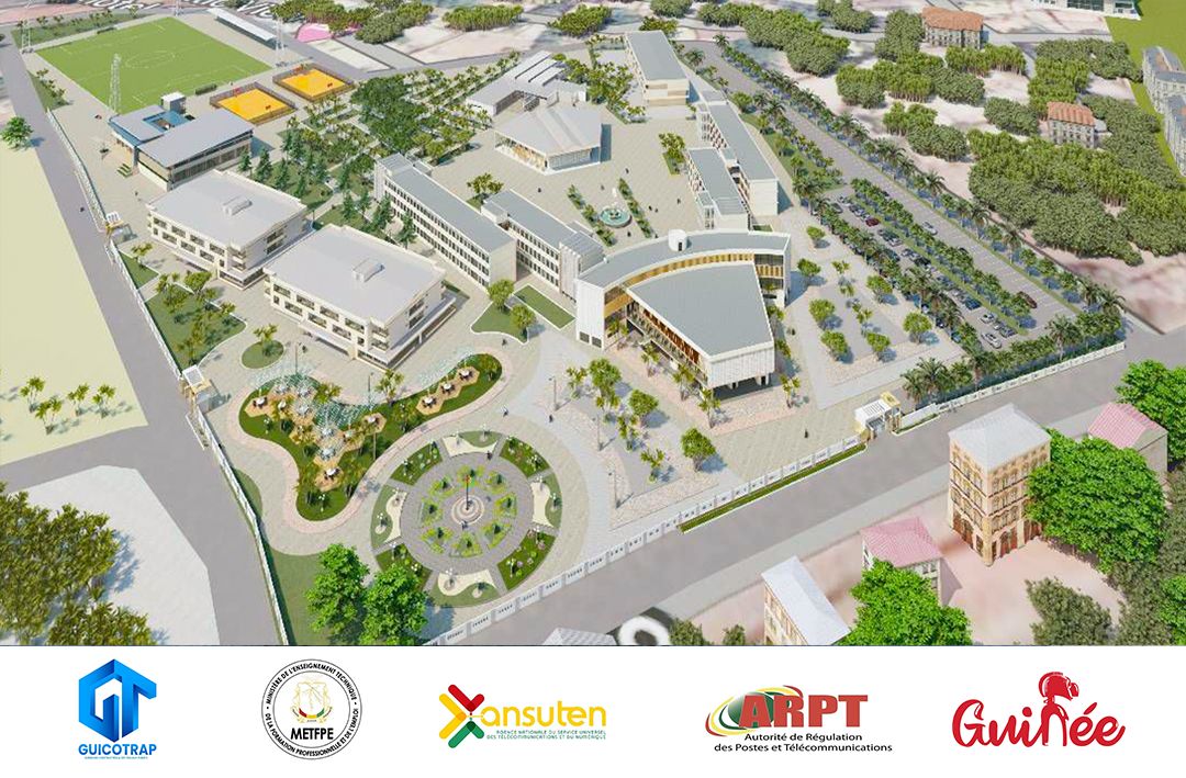 Le village numérique de Guinée qui sera bâti sur une superficie de 46 707,12 m² sera constitué de quatre (4) blocs pédagogiques, Un (1) bloc administratif, Une (1) résidence pour étudiants formée de deux bâtiments, Un (1) amphithéâtre, Une (1) Bibliothèque, Une (1) résidence de professeurs, Un (1) centre sportif, des constructions secondaires, des aménagements extérieurs et des Voiries et Réseaux Divers (VRD) pour un délai d’exécution de douze (12) mois.